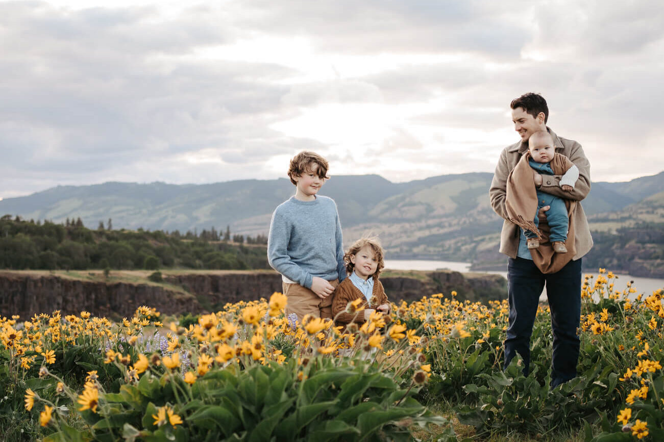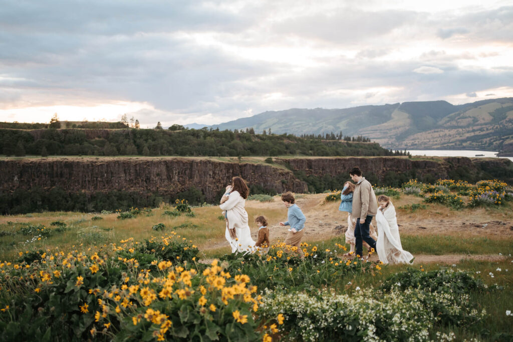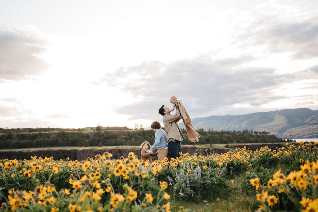 Spring in the Columbia River Gorge is something special. The hills turn green, wildflowers bloom across the landscape, and the air feels fresh in a way that only Oregon spring can offer. If you’re considering a wildflower photo session by Portland, spring in the Columbia River Gorge is truly worth the drive. Just about an hour from Portland, Hood River offers the perfect mix of scenery, small-town charm, and relaxed family activities — making your photo session feel like a mini getaway rather than just an appointment.